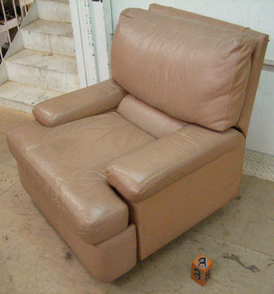 長い間使い続けるうちに、汚れてしまった本革製のソファ。