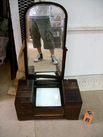 昔の鏡台。でも膝が痛いので椅子に座って使いたい