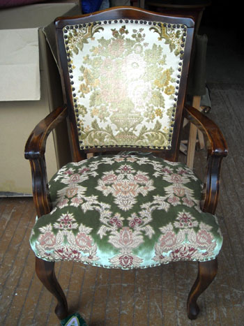 座面のみの張替。柄を合わせて自然な仕上がりに