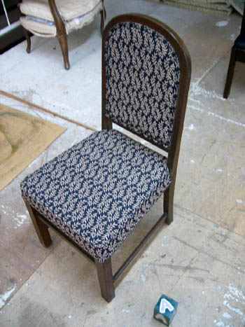 椅子の落ち着いた色調に、クラシックなブルーの生地がよく合っています。